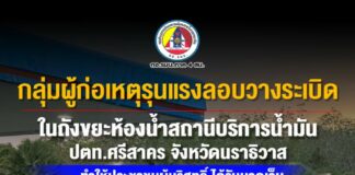 เมื่อวันที่ 10 กุมภาพันธ์ 2569 เวลาประมาณ 18.00 น. ที่ผ่านมา เกิดเหตุคนร้ายลอบวางระเบิดในถังขยะห้องน้ำสถานีบริการน้ำมัน ปตท. ในพื้นที่อำเภอศรีสาคร จังหวัดนราธิวาส แรงระเบิดส่งผลให้มีประชาชนได้รับบาดเจ็บมีอาการหูอื้อ 3 ราย ทราบชื่อคือ นางสาวรุสลีสา สะแลแม, นางสาวสารีดา ...