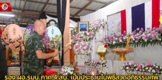 รอง ผอ.รมน.ภาค 4 สน. เป็นประธานในพิธีสวดอภิธรรมศพ อส.ทพ.ธนภัทร เหมมณี ซึ่งเสียชีวิตจากเหตุการณ์ความรุนแรงในพื้นที่ จชต.