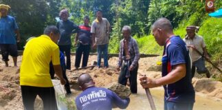 ทหารพรานนาวิกโยธินร่วมกันพัฒนาเปิดทรายที่อุดตันฝายกั้นน้ำบ้านนากอ และตกแต่งภูมิทัศน์ จ.นราธิวาส