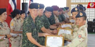 รอง ผอ.รมน.ภาค 4 สน. เป็นประธานพิธีปิดการฝึก หลักสูตรเสริมสร้างผู้นำ อส.จชต. ประจำปี 2567 รุ่นที่ 11