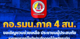 กองอำนวยการรักษาความมั่นคงภายในภาค 4 ส่วนหน้า ขอเชิญชวนร่วมบริจาคสิ่งของ ช่วยเหลือประชาชนผู้ประสบภัยจากเหตุการณ์โกดังประทัดดอกไม้เพลิงระเบิด ที่ชุมชนบ้านมูโนะ อำเภอสุไหงโก-ลก จังหวัดนราธิวาส