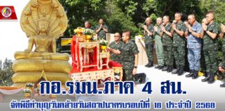 กอ.รมน.ภาค 4 สน. จัดพิธีทำบุญวันคล้ายวันสถาปนาครบรอบปีที่ 18 ประจำปี 2568 อุทิศส่วนกุศลให้กำลังพลที่ล่วงลับจากการปฏิบัติหน้าที่ในพื้นที่ จชต.