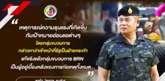 “…เหตุการณ์ความรุนแรงที่เกิดขึ้นกับเป้าหมายอ่อนแอต่างๆ โดยกลุ่มขบวนการกล่าวหาว่าเจ้าหน้าที่รัฐเป็นฝ่ายกระทำ แท้จริงแล้วกลุ่มขบวนการ BRN เป็นผู้อยู่เบื้องหลังของการก่อเหตุทั้งหมด…”
