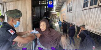 เมื่อวันที่ 20 พฤศจิกายน 2565 เวลา 12.00 น. ณ บ้านยือเลาะ หมู่ที่ 9 ตำบลจอเบาะ อำเภอยี่งอ จังหวัดนราธิวาส หน่วยเฉพาะกิจทหารพรานนาวิกโยธิน กองทัพเรือ จัดชุดปฏิบัติการสำนักงานสาธารณสุขจังหวัด ร่วมกับผู้นำชุมชน จัดกิจกรรมเดินเท้าเข้าชุมชนแจกจ่ายยาสามัญประจำบ้าน และเวชภัณฑ์ให้กับประชาชน และได้ทำการตรวจสุขภาพพร้อมให้คำแนะนำการดูแลสุขภาพในการป้องกันโรคไข้เลือดออกในเบื้องต้นฯ เนื่องจากช่วงนี้มีฝนตกทุกวันทำให้โรคไข้เลือดออกระบาดในหมู่บ้าน อีกทั้งเพื่อสร้างการรับรู้และเป็นการป้องกันโรคดังกล่าวฯ