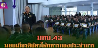 มทบ.43 มอบเกียรติบัตรให้ทหารกองประจำการ ส่งเสริมความภาคภูมิใจ และเตรียมความพร้อมก่อนปลดประจำการ