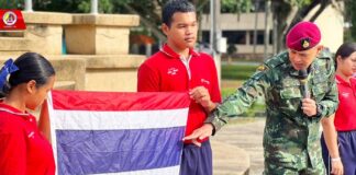 ฉก.สันติสุข ดำเนินกิจกรรมเสาธง ๕ นาที ณ โรงรียนสะบ้าย้อยวิทยา อ.สะบ้าย้อย จ.สงขลา