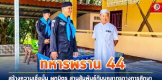 “ทหารพราน 44” สร้างความเชื่อมั่น ผูกมิตร สานสัมพันธ์ กับบุคลากรทางการศึกษา โรงเรียนสอนศาสนา ในพื้นที่ จ.ปัตตานี