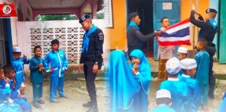 พบปะครูสอนศาสนาและนักเรียนตาดีกา พร้อมร่วมกิจกรรมเสาธง 5 นาที ปลูกฝังอุดมการณ์ความรักชาติให้กับนักเรียนในพื้นที่ จชต.