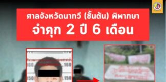 ศาลจังหวัดนาทวี (ชั้นต้น) พิพากษา จำคุก 2 ปี 6 เดือน กรณีแขวนป้ายและพ่นสีสเปรย์ สร้างความปั่นป่วนและกระด้างกระเดื่องในหมู่ประชาชน
