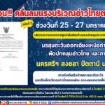 เตือน!! คลื่นลมแรงบริเวณอ่าวไทยตอนล่าง ช่วงวันที่ 25 - 27 มกราคม 2567 ฉบับที่ 5 บริเวณความกดอากาศสูงกำลังค่อนข้างแรงปกคลุมประเทศไทยและทะเลจีนใต้ มรสุมตะวันออกเฉียงเหนือกำลังแรงพัดปกคลุมอ่าวไทย และภาคใต้ นครศรีฯ สงขลา ปัตตานี นราธิวาส