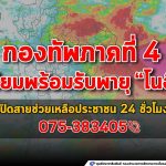 กองทัพภาคที่ 4 เตรียมพร้อมรับพายุ “โนอึล” ตั้งศูนย์บรรเทาสาธารณภัยกองทัพภาคที่ 4 ช่วยเหลือประชาชน 24 ชั่วโมง