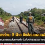 บูรณาการร่วม 3 ฝ่าย ซักซ้อมแผนเผชิญเหตุและรักษาความปลอดภัยเส้นทางรถไฟ ในพื้นที่อำเภอระแงะ จังหวัดนราธิวาส