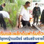 ส่งเสริมและผลักดันฟาร์มตัวอย่างในสมเด็จพระนางเจ้าสิริกิติ์ พระบรมราชินีนาถ พระบรมราชชนนีพันปีหลวง ปลูกหญ้าเนเปียร์เสริมสร้างรายได้