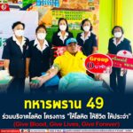 ทหารพราน 49 ร่วมบริจาคโลหิต ภายใต้ชื่อโครงการ “ให้โลหิต ให้ชีวิต ให้ประจำ” เพื่อสำรองโลหิตในการนำไปใช้ช่วยเหลือผู้เจ็บป่วยในพื้นที่