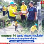 ทหารพราน 44 ร่วมกับ พี่น้องประชาชนในพื้นที่ ช่วยกันพัฒนาปรับปรุงภูมิทัศน์ภายในชุมชน ดังคำกล่าวที่ว่า “ทหาร เป็นที่พึ่ง ของพี่น้องประชาชนในทุกโอกาส”