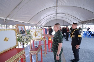 วันนี้ ( 9 เมษายน 2567 ) เวลา 08.00 น. ที่ วัดบางนรา ตำบลบางนาค อำเภอเมืองนราธิวาส จังหวัดนราธิวาส พลโท ศานติ ศกุนตนาค แม่ทัพภาคที่ 4/ ผู้อำนวยการรักษาความมั่นคงภายในภาค 4 เป็นประธานพิธีวางพวงหรีดเคารพศพ และรดน้ำศพ อาสาสมัครทหารพราน ประคอง สุทนัง และอาสาสมัครทหารพราน วิทยา ปวงงาม 2 ทหารกล้าจากกรมทหารพรานที่ 46 ซึ่งเสียชีวิตจากเหตุคนร้ายที่ซุ่มอยู่บริเวณข้างทางยิงใส่อย่างโหดเหี้ยม ขณะเดินทางกลับจากการตรวจเยี่ยมการจัดทำซุ้มประตูในพื้นที่บ้านกำปงบูเก๊ะ ตำบลบางตง อำเภอรือเสาะ จังหวัดนราธิวาส เมื่อวันที่ 7 เมษายน ที่ผ่านมา โดยเหตุการณ์ครั้งนี้นอกจากจะมีทหารกล้าผู้เสียชีวิต 2 นาย ยังมีผุ้ได้รับบาดเจ็บอีก 9 นายด้วย โดยในเวลาต่อมา พระบาทสมเด็จพระเจ้าอยู่หัว ทรงพระกรุณาโปรดเกล้าโปรดกระหม่อมให้ ว่าที่ร้อยตรี ตระกูล โทธรรม ผู้ว่าราชการจังหวัดนราธิวาส เชิญน้ำหลวงอาบศพแก่สองวีรชนทหารกล้าผู้วายชนม์ ยังความปลื้มปีติในพระมหากรุณาธิคุณแก่ทั้งสองครอบครัวเป็นล้นพ้น