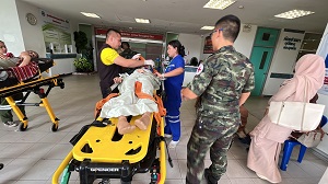 ด้านเจ้าหน้าที่ทหารที่พบเห็นเหตุการณ์ได้ประสานเจ้าหน้าที่จากศูนย์ประสานการแพทย์จังหวัดชายแดนภาคใต้ (ศปกพ.จชต.) ช่วยปฐมพยาบาลและนำตัวผู้ได้รับบาดเจ็บส่งโรงพยาบาลศูนย์ยะลา เพื่อทำการรักษาต่อไป ทั้งนี้ เจ้าหน้าที่ได้คำนึงถึงความรวดเร็ว และความปลอดภัยที่จะช่วยชีวิตของประชาชน ทำให้สามารถช่วยเหลือผู้ประสบอุบัติเหตุได้อย่างถูกต้อง และสามารถช่วยเหลือประชาชนได้อย่างท่วงที “เพราะ…ทหารเป็นที่พึ่งของประชาชนในทุกโอกาส”