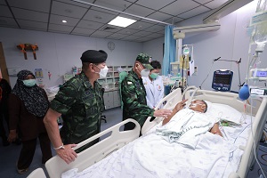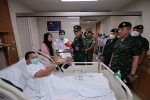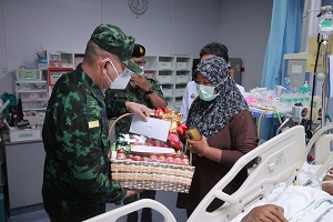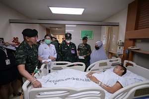 ในการนี้ ผู้บัญชาการทหารบก ได้นำกระเช้าเยี่ยมให้กำลังใจผู้ได้รับบาดเจ็บ ก่อนยืนยันถึงสิทธิและสวัสดิการต่างๆ กองทัพบกจะดูแลอย่างสุดความสามารถ พร้อมทั้งชื่นชมและให้กำลังใจแก่ครอบครัวทหารหาญที่เสียสละเพื่อรักษาความสงบเรียบร้อยให้แก่พี่น้องประชาชน ซึ่งเหตุการณ์ต่าง ๆ ที่เกิดขึ้นไม่มีใครอยากให้เกิดการบาดเจ็บหรือสูญเสีย แต่เมื่อทุกอย่างเกิดขึ้นแล้วขอถือเป็นบทเรียนและนำมาทบทวนปรับแก้กันใหม่ เพราะภารกิจสร้างความปลอดภัยในพื้นที่ยังเดินหน้าต่อไปไม่มีวันหยุด แม้จะเหนื่อยหน่อยแต่มันคือหน้าที่