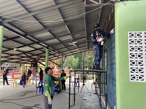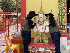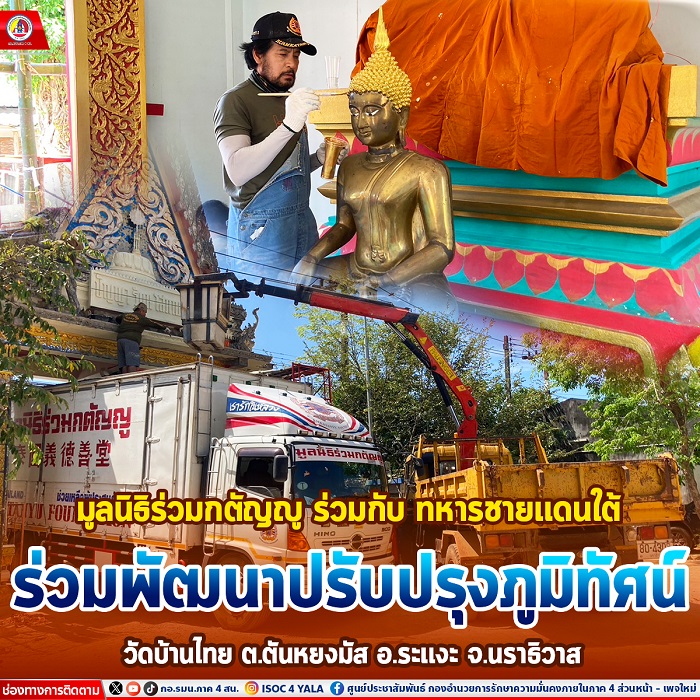 เมื่อวันที่ 12 เมษายน 2567 เวลา 08.00 น. ร้อยโท คมสัน ศรีรักษ์ ผู้บังคับกองร้อยทหารพรานที่ 4503 พร้อมด้วย คุณบิณฑ์ บรรลือฤทธิ์ ผู้จัดการฝ่ายกิจกรรมพิเศษ มูลนิธิร่วมกตัญญู, ทีมงานอาสามูลนิธิร่วมกตัญญู, ดาราจิตอาสา, ชุดปฏิบัติการกิจการพลเรือนกองร้อยทหารพรานที่ 4503 และประชาชนในพื้นที่ ร่วมพัฒนาปรับปรุงภูมิทัศน์วัดชัยรัตนาราม (วัดบ้านไทย) หมู่ที่ 3 ตำบลตันหยงมัส อำเภอระแงะ จังหวัดนราธิวาส โดยได้ทำความสะอาดบริเวณพื้นที่โดยรอบวัด พร้อมทั้งทาสีใหม่ให้วัดสวยงามมากยิ่งขึ้น ปัจจุบันดำเนินการไปแล้ว 75%