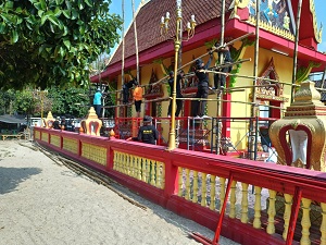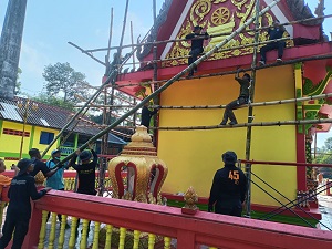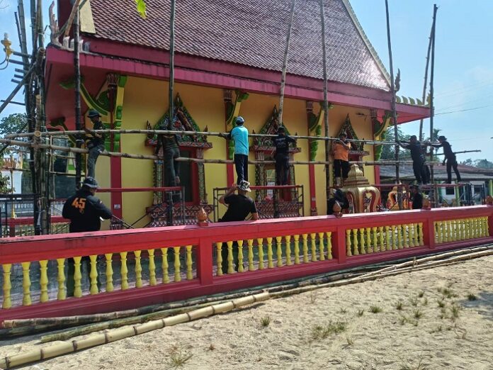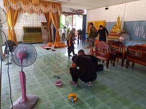 วันที่ 14 เมษายน 2567 เวลา 08.00 น. ร้อยโท คมสัน ศรีรักษ์ ผู้บังคับกองร้อยทหารพรานที่ 4503 พร้อมด้วย คุณบิณฑ์ บรรลือฤทธิ์ ผู้จัดการฝ่ายกิจกรรมพิเศษ มูลนิธิร่วมกตัญญู, ทีมงานอาสามูลนิธิร่วมกตัญญู, ดาราจิตอาสา, ชุดปฏิบัติการกิจการพลเรือนกองร้อยทหารพรานที่ 4503 และประชาชนในพื้นที่ ร่วมพัฒนาปรับปรุงภูมิทัศน์วัดชัยรัตนาราม (วัดบ้านไทย) หมู่ที่ 3 ตำบลตันหยงมัส อำเภอระแงะ จังหวัดนราธิวาส ซึ่งมี พระครูชัยรัตนานุรักษ์ ปริมุตฺโต (เป็นเจ้าอาวาส) โดยได้ทำความสะอาดบริเวณพื้นที่โดยรอบวัด พร้อมทั้งทาสีใหม่ให้วัดสวยงามมากยิ่งขึ้น ตั้งแต่วันที่ 10 – 14 เมษายน 2567 ที่ผ่านมา ปัจจุบันดำเนินการไปแล้ว 90%