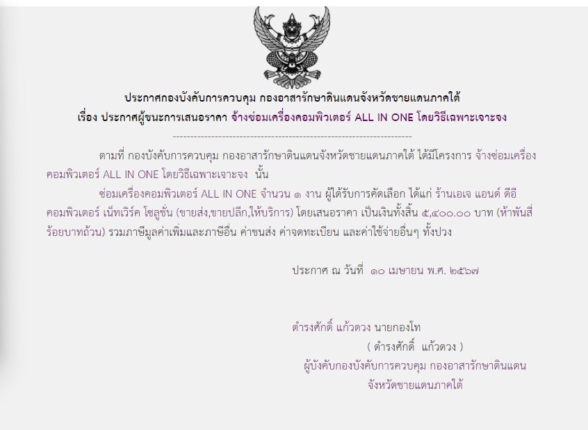 จัดซื้อ จัดจ้างประกาศผู้ชนะการเสนอราคา ประกาศผู้ชนะการเสนอราคา จ้างซ่อมเครื่องคอมพิวเตอร์ ALL IN ONE โดยวิรีเฉพาะเจาะจง April 16, 2024 517 Share Facebook Twitter Google+ Telegram LINE