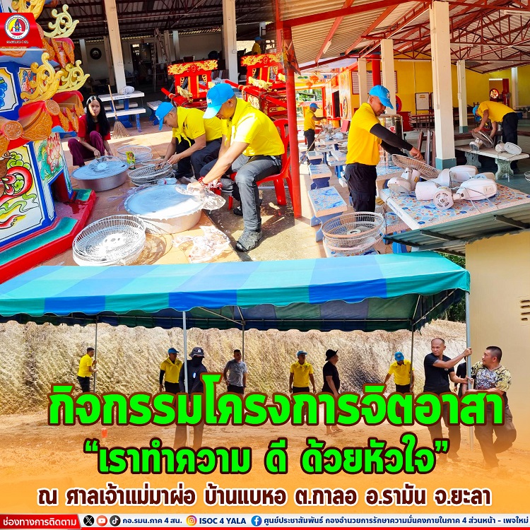 เมื่อวันที่ 17 เมษายน 2567 เวลา 09.00 น. หน่วยเฉพาะกิจกรมทหารพรานที่ 41 โดย ผู้บังคับกองร้อยทหารพรานที่ 4103 พร้อมด้วย กำลังพลจิตอาสา กองร้อยทหารพรานที่ 4103 หน่วยเฉพาะกิจกรมทหารพรานที่ 41 ร่วมกับ ประชาชนไทยพุทธเชื้อสายจีนในพื้นที่ ร่วมจัดกิจกรรมโครงการจิตอาสา “เราทำความ ดี ด้วยหัวใจ” โดยการพัฒนาปรับปรุงภูมิทัศน์ศาลเจ้าแม่มาผ่อ เพื่อเสริมสร้างทัศนียภาพที่สวยงาม และเป็นการแสดงถึงความสามัคคี ความร่วมมือร่วมใจ ระหว่างประชาชนกับเจ้าหน้าที่รัฐ ณ ศาลเจ้าแม่มาผ่อ บ้านแบหอ หมู่ที่ 1 ตำบลกาลอ อำเภอรามัน จังหวัดยะลา