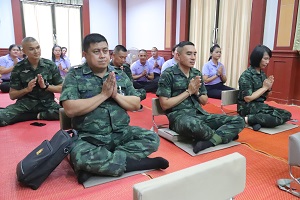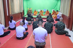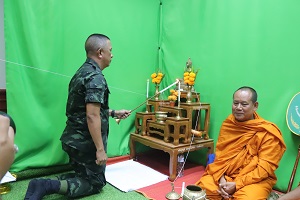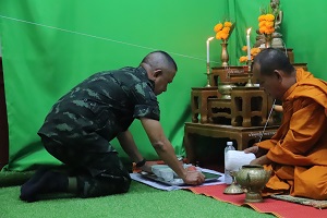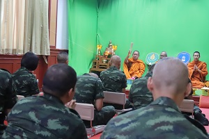 จากนั้นได้ประกอบพิธีทางศาสนาพุทธโดยได้นิมนต์พระสงฆ์ประกอบพิธีสวดพระพุทธมนต์และถวายภัตตาหารเพล เนื่องในโอกาสขึ้นปีใหม่ 2567 เพื่อความเป็นสิริมงคลแก่หน่วยและกำลังพลที่ปฏิบัติงานภายในศูนย์ประชาสัมพันธ์ กองอำนวยการรักษาความมั่นคงภายในภาค 4 ส่วนหน้า