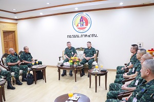 วันนี้ (18 เมษายน 2567) เวลา 15.00 น. ที่ ห้องรับรอง กองอำนวยการรักษาความมั่นคงภายในภาค 4 ส่วนหน้า ค่ายสิรินธร ตำบลเขาตูม อำเภอยะรัง จังหวัดปัตตานี พลโท ศานติ ศกุนตนาค แม่ทัพภาคที่ 4 / ผู้อำนวยการรักษาความมั่นคงภายในภาค 4 ให้การต้อนรับ พลโท ประสาน แสงศิริรักษ์ แม่ทัพภาคที่ 3 และคณะ ในโอกาสลงมาปฏิบัติภารกิจในพื้นที่จังหวัดชายแดนภาคใต้ และถือโอกาสเข้าเยี่ยมแม่ทัพภาคที่ 4 ตลอดจนได้พบปะ หารือ แลกเปลี่ยนความคิดเห็น ในการแก้ไขปัญหาในพื้นที่จังหวัดชายแดนภาคใต้ ให้พื้นที่เกิดความสันติสุขที่ยั่งยืนต่อไป