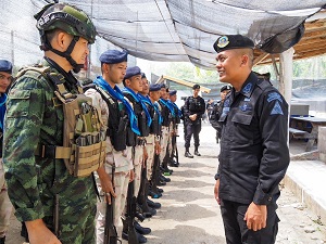 เมื่อวันที่ 20 เมษายน 2567 พันเอก อุเทน จีนทองหลาง ผู้บังคับหน่วยเฉพาะกิจกรมทหารพรานที่ 22 พร้อมคณะ ลงพื้นที่ตรวจเยี่ยมและติดตามการปฏิบัติงานของชุดคุ้มครองตำบล (ชคต.) พร้อมทั้งให้กำลังใจ พบปะ มอบนโยบาย และแนวทางการปฏิบัติงานเชิงรุกในการดูแลหมู่บ้าน ชุมชน แก่เจ้าหน้าที่ ชุดคุ้มครองตำบลในพื้นที่ จำนวน 2 แห่ง คือ ชุดคุ้มครองตำบลเขาตูม และชุดคุ้มครองตำบลกอลำ อำเภอยะรัง จังหวัดปัตตานี เพื่อให้ชุดคุ้มครองตำบล สามารถปฏิบัติงานได้อย่างมีประสิทธิภาพ มีความเข้มแข็งและสามารถควบคุมพื้นที่รับผิดชอบของตนเองได้ในทุกมิติ