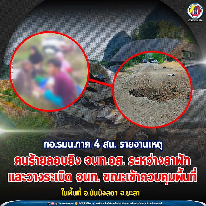 ล่าสุดเจ้าหน้าที่ได้เข้าทำการตรวจสอบและควบคุมพื้นที่เกิดเหตุ เพื่อขยายผลติดตามตัวคนร้ายมาดำเนินคดีตามกฎหมายโดยเร็ว ขอให้พี่น้องประชาชนในพื้นที่ระมัดระวังในการเดินทางสัญจรเส้นทางดังกล่าว สำหรับความคืบหน้าจะรายงานให้ทราบต่อไป