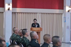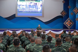 โดยแม่ทัพภาคที่ 4 กล่าวว่า “การฝึกทหารใหม่นั้น สิ่งสำคัญเลยเราต้องปรับให้เข้ากับสถานการณ์ปัจจุบัน ทั้งสภาพแวดล้อมและความคิด ให้น้อง ๆ ทหารรู้สึกว่าการเข้ามาในกองทัพแล้วรู้สึกถึงความภาคภูมิใจ เกิดจิตสำนึก ในความรักชาติ ศาสนา พระมหากษัตริย์ และการดูแลพี่น้องประชาชน เปรียบเสมือนเป็นการสร้างคนให้กับกองทัพ และประเทศชาติซึ่งแน่นอนว่าจะเป็นสิ่งท้าทายสำหรับผู้ฝึก โดยจะต้องยึดถือระเบียบ คำสั่ง วินัย และข้อบังคับอย่างเคร่งครัด ตรวจสอบสภาวะจิตใจ สภาวะร่างกาย และองค์ประกอบอื่นๆ ถ่ายทอดให้กับน้องๆ ด้วยความอบอุ่น ประทับใจ เป็นภาพจำจนผ่านการฝึกด้วยความสมบูรณ์ และเนื่องจากในการฝึกทหารใหม่ที่จะถึงนี้ สภาพอากาศค่อนข้างร้อน เพราะฉะนั้นอาจจะเป็นอุปสรรคต่อการฝึกได้ ผู้ที่เกี่ยวข้องต้องเตรียมการเฝ้าระวังอย่างใกล้ชิด โดยเฉพาะคู่บัดดี้ต้องประกบคู่กันอย่างเหมาะสมเพื่อจะได้พึ่งพาอาศัยกันได้ในระหว่างการฝึก ครูฝึกต้องมองว่าทุกคนที่เข้ามาคือน้องของเรา น้อง ๆ ทหารใหม่ต้องจากบ้านจากคนรักมา เราต้องเติมเต็มส่วนนั้นให้กับเค้า ให้เหมือนเป็นครอบครัวของเรา ขาดตกบกพร่องตรงไหนต้องดูแล ใส่ใจ ช่วยเหลือทันที ซึ่งจากวันนี้ให้กลับไปเตรียมความพร้อม วางแผนงานเกี่ยวกับการฝึกให้มีความเรียบร้อย เพื่อสร้างความประทับใจต่อน้อง ๆ ทหาร และญาติให้มีความมั่นใจในการที่จะฝากลูกหลานกับหน่วยทหาร รวมถึงน้องๆ ทหารเองจะต้องไม่มีความกังวลต่อบุคคลทางบ้านเมื่อมาประจำการ เพราะหน่วยจะต้องใส่ใจ ดูแล สนับสนุนเป็นครอบครัวเดียวกันด้วย ทั้งนี้สิ่งสำคัญจะต้องมีการส่งเสริมและผลักดันความถนัดของแต่ละคนเพื่อที่จะได้ออกไปมีอาชีพเสริม สร้างรายได้ให้กับตนเองในอนาคตหลังปลดประจำการอีกด้วย”