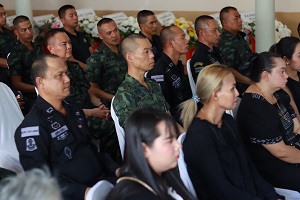 โอกาสนี้ พลตรี กรกฎ ภู่โชติ รองผู้อำนวยการรักษาความมั่นคงภายในภาค 4 ส่วนหน้า ได้วางพวงหรีดเคารพศพในนามของ พลโท ศานติ ศกุนตนาค แม่ทัพภาคที่ 4/ ผู้อำนวยการรักษาความมั่นคงภายในภาค 4 และมีผู้แทนหัวหน้าส่วนราชการทหาร ตำรวจ วางพวงหรีดเคารพศพพร้อมมอบเงินช่วยเหลือเบื้องต้น จากนั้น ประธานในพิธีเชิญน้ำหลวงอาบศพแก่วีรชนทหารกล้าผู้วายชนม์ ยังความปลื้มปีติในพระมหากรุณาธิคุณแก่ครอบครัวเป็นล้นพ้น โดยมี ผู้บังคับบัญชา, หัวหน้าส่วนราชการ ทหาร ตำรวจ เพื่อนข้าราชการต่างร่วมแสดงความอาลัยเป็นจำนวนมาก ส่งความเสียใจอย่างสุดซึ้งไปยังครอบครัวของผู้เสียชีวิต