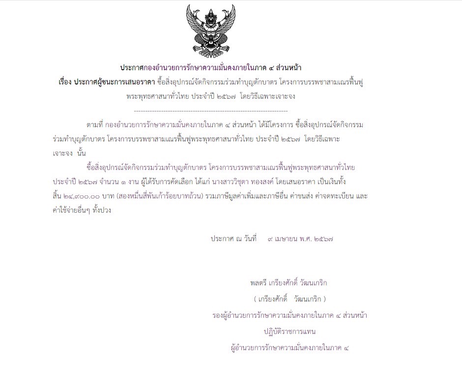 จัดซื้อ จัดจ้างประกาศผู้ชนะการเสนอราคา ประกาศผู้ชนะการเสนอราคา ซื้อสิ่งอุปกรณ์จัดกิจกรรมร่วมทำบุญตักบาตร โครงการบรรพชาสามเณรพื้นฟูพระพุทธศาสนาทั่วไทย ประจำปี ๒๕๖๗ โดยวิธีเฉพาะเจาะจง May 3, 2024 366 Share Facebook Twitter Google+ Telegram LINE