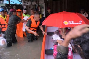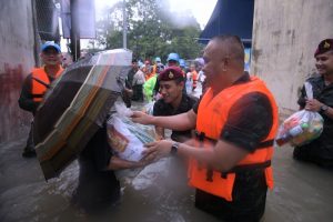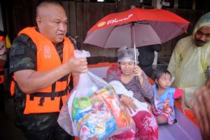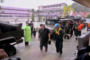 โดยแม่ทัพภาคที่ 4 กล่าวว่า กองทัพบก โดยท่านผู้บัญชาการทหารบก พลเอก ณรงค์พันธ์ จิตต์แก้วแท้ เน้นย้ำให้หน่วยทหารทุกหน่วยได้เตรียมความพร้อมไว้ก่อนหน้านี้แล้ว เนื่องจากในห้วงปลายพฤศจิกายน-ธันวาคม ในพื้นที่ของภาคใต้มีมรสุมประจำทุกปี จึงได้ให้สั่งการให้หน่วยทหารในพื้นที่ได้เตรียมความพร้อมในเรื่องของยุทโธปกรณ์กำลังพล และก็ให้มีการซักซ้อมตลอด โดยกองทัพภาคที่ 4 เอง ก็ได้สั่งการให้หน่วยดำเนินการสำรวจความพร้อม และทำหน้าที่ป้องกันบรรเทาสาธารณภัยที่เกิดจากอุทกภัยเอาไว้ก่อนหน้านี้แล้ว ได้มีการแบ่งมอบพื้นที่เป็นอำเภอ เป็นเขตตำบลกันอย่างชัดเจน ว่าหน่วยไหนใครจะรับผิดชอบ ประสานการปฏิบัติกับทางจังหวัด ทางอำเภอ ตำบลที่อยู่ในพื้นที่รับผิดชอบของแต่ละหน่วย เพื่อที่จะประสานข้อมูลการติดต่อสื่อสารเมื่อเกิดภัยธรรมชาติเกิดขึ้นให้มีความพร้อมอยู่ตลอดเวลา 24 ชั่วโมง หน่วยทหารทุกหน่วยไม่ต้องรอรับคำสั่งสามารถปฏิบัติได้ตามแผนได้ทันที พี่น้องประชาชนรวมไปถึงท้องที่ได้รับความเดือดร้อน สามารถประสานการให้ความช่วยเหลือ เครื่องไม้เครื่องมือ และเจ้าหน้าที่โดยตรงได้ตลอด สำหรับการดำเนินการเกี่ยวกับการให้ความช่วยเหลือพี่น้องประชาชนที่ได้รับความเดือดร้อนในขั้นต้น ซึ่งมีอยู่หลายพื้นที่ในจังหวัดนครศรีธรรมราช ทราบว่ามี 23 อำเภอ ในขณะนี้แจ้งมาแล้ว 21 อำเภอเหลือ 2 อำเภอ คือทุ่งใหญ่ และบางขัน คาดว่าคงได้รับผลกระทบไม่แพ้กัน ซึ่งขณะนี้อยู่ในขั้นตอนการบรรเทาทุกข์ดูแลพี่น้องในการอพยพในพื้นที่ เข้าสู่พื้นที่พักพิงชั่วคราวและการโยกย้ายสิ่งของของพี่น้องที่บ้านเรือนน้ำท่วม เพื่อป้องกันความเสียหาย ได้ดำเนินการไปแล้ว ในส่วนของเรื่องอาหารการกินบรรเทาทุกข์นั้นได้สั่งการรถครัวสนามเข้ามาช่วยดำเนินการจัดตั้งในพื้นที่บรรเทาทุกข์ให้กับพี่น้องประชาชนจนกว่าสถานการณ์จะดีขึ้น