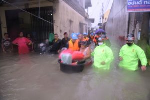 วันนี้ 2 ธันวาคม 2563 เวลา 15:00 น. หลังจากลงพื้นที่สำรวจสถานการณ์น้ำท่วมในเขตอำเภอรัตภูมิ จังหวัดสงขลา พลโท เกรียงไกร ศรีรักษ์ แม่ทัพภาคที่ 4 ทันทีที่ได้รับแจ้งสถานการณ์น้ำท่วมในเขตอำเภอเมือง จังหวัดนครศรีธรรมราช ตัดสินใจขึ้นเฮลิคอปเตอร์บินตรงมายังพื้นที่ประสบอุทกภัยในเขตพื้นที่อำเภอเมือง จังหวัดนครศรีธรรมราช โดยทันที โดยก่อนหน้านี้ได้สั่งการไปยังหน่วยทหารในพื้นที่ ศูนย์บรรเทาสาธารณภัยทั้ง 8 ศูนย์ ในพื้นที่นครศรีธรรมราช เข้าช่วยเหลือพี่น้องประชาชนโดยด่วน เนื่องจาก ตลอดทั้งคืนที่ผ่านมามีฝนตกหนักอย่างต่อเนื่อง โดยศูนย์บรรเทาสาธารณภัยของกองพันทหารราบที่ 2 กรมทหารราบที่ 15 และมณฑลทหารบกที่ 41 เร่งให้การช่วยเหลือ เร่งขนย้ายสิ่งของและอพยพพี่น้องประชาชนในพื้นที่เสี่ยงมายังศูนย์อพยพโดยด่วน พร้อมทั้งสนับสนุนกำลังพลและยุทโธปกรณ์ในการเคลื่อนย้าย และอำนวยความสะดวกให้กับพี่น้องประชาชนตลอด 24 ชั่วโมง โดยแม่ทัพภาคที่ 4 เดินทางมายังศูนย์อพยพชั่วคราวโรงเรียนเทศบาลวัดท่าโพธิ์ อำเภอเมือง จังหวัดนครศรีธรรมราช เพื่อมอบอาหารเครื่องดื่มสิ่งของเครื่องใช้จำเป็นเบื้องต้น ให้กับผู้อพยพที่เดินทางมาอาศัยพักพิงชั่วคราว ประมาณ 60 ครัวเรือน จำนวน 230 คน โดยทาง จังหวัดนครศรีธรรมราชโดยผู้ว่าราชการจังหวัด เปิดอาคารเรียนอาคารที่ 1 และ 2 สำหรับผู้อพยพได้เข้าพักพิงและยังคงมีสำรองไว้อีก 2 อาคาร คาดว่าจะเพียงพอต่อผู้ลงทะเบียน เข้ารับการอพยพที่มีมากถึง 167 ครัวเรือน จำนวน 687 คนในเขตเทศบาล ภาพรวมสถานการณ์ยังคงมีฝนตกหนัก ต่อเนื่อง การให้ความช่วยเหลือมีความยากลำบากเนื่องจากน้ำมีปริมาณที่สูงขึ้น และยังคงต้องตั้งรับน้ำที่ไหลมาจากคีรีวงและลานสกา แม่ทัพภาคที่ 4 จึงได้สั่งการศูนย์บรรเทาสาธารณภัยในพื้นที่ เร่งให้ความช่วยเหลือ บูรณาการร่วมกับทุกภาคส่วน ประสานการปฏิบัติตลอด 24 ชั่วโมงเบื้องต้นจัดรถครัวสนามและเร่งอพยพผู้คนที่ยังติดค้างมายังศูนย์อพยพโดยด่วน คาดว่าใช้เวลา 6-7 วันจนกว่าสถานการณ์น้ำจะคลี่คลายและลดระดับลง แต่หากน้ำยังคงท่วมขังการเข้าช่วยเหลือคงจะมีความยากลำบากจะต้องใช้ยุทโธปกรณ์ ปรับแผนการปฏิบัติโดยทันที