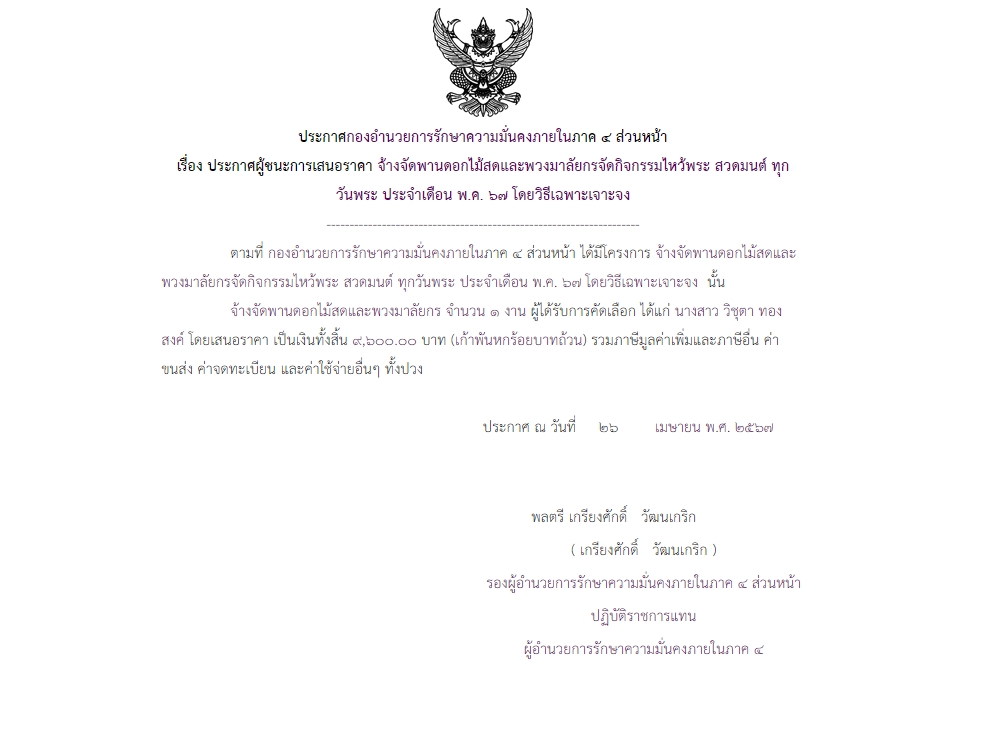 จัดซื้อ จัดจ้างประกาศผู้ชนะการเสนอราคา ประกาศผู้ชนะการเสนอราคา จ้างจัดพานดอกไม้สดและพวงมาลัยกรจัดกิจกรรมไหว้พระ สวดมนต์ ทุกวันพระ ประจำเดือน พ.ค. ๖๗ โดยวิธีเฉพาะเจาะจง May 5, 2024 307 Share Facebook Twitter Google+ Telegram LINE