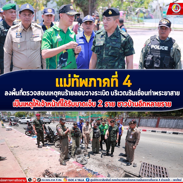 จากเหตุการณ์คนร้ายได้วางระเบิดแสวงเครื่อง ซึ่งติดตั้งในรถจักรยานยนต์ และจอดไว้บริเวณหน้าเขื่อนท่าพระยาสาย ถนนภูผาภักดี ตำบลบางนาค อำเภอเมือง จังหวัดนราธิวาส เมื่อคืนของวันที่ 6 พฤษภาคม 2567 เวลา 21.30 น. ที่ผ่านมา ซึ่งเป็นเวลาที่พี่น้องประชาชนใช้พื้นที่ดังกล่าวพาบุตรหลานมาพักผ่อน และออกกำลังกาย ทำให้เจ้าหน้าที่ อส.อ.เมือง จำนวน 2 นาย และประชาชนจำนวนหนึ่งได้รับบาดเจ็บ