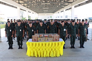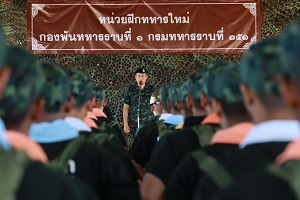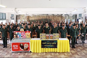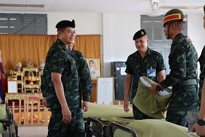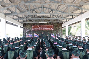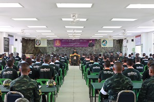 โอกาสนี้ พลตรี ไพศาล หนูสังข์ รองแม่ทัพภาคที่ 4 / รองผู้อำนวยการรักษาความมั่นคงภายในภาค 4 ส่วนหน้า ได้พบปะ พูดคุยสอบถามให้กำลังใจน้องทหารใหม่ พร้อมทั้งได้นำนโยบาย ข้อสั่งการจากผู้บังคับบัญชามาบอกกล่าวยังหน่วยฝึกให้ปฎิบัติตามข้อสั่งการ รวมถึงนำข้อห่วงใยจากผู้บังคับบัญชามาถ่ายทอดสู่น้อง ๆ ทหารใหม่ ทั้งเรื่องของหลักสูตรการฝึก เรื่องคุณภาพชีวิตความเป็นอยู่ของทหารใหม่ให้เป็นไปตามนโยบายของกองทัพบก โดยให้ดูแลน้องทหารใหม่เสมือนเป็นคนในครอบครัว ให้ดูแลความเป็นอยู่อย่างคลอบคลุมในทุกด้านตลอดระยะเวลาการฝึก โดยเฉพาะในเรื่องของการปรับสภาพแวดล้อมในโรงนอน ให้มีอากาศถ่ายเทตามที่กรมการแพทย์ทหารบกกำหนด รวมไปทั้งการติดตั้งมุ้งลวดโรงนอนเพื่อป้องกันโรคไข้เลือดออก และติดตั้งระบบฉีดน้ำบนหลังคาโรงนอนเพื่อบรรเทาความร้อนจากสภาพอากาศ นอกจากนี้ยังเน้นย้ำให้ดูแลเรื่องของความเจ็บไข้ได้ป่วยและโรคลมร้อน (Heat Stroke) พร้อมสนับสนุนการศึกษาต่อ ไม่ว่าจะเป็นการศึกษาในระดับที่สูงขึ้น และโอกาสในการสอบเป็นนักเรียนนายสิบทหารบก เพื่อเพิ่มความก้าวหน้าในการบรรจุเข้ารับราชการทหาร นำไปสู่ความมั่นคงในอนาคตภายภาคหน้า