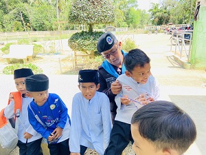 นอกจากนี้เจ้าหน้าที่ทหารพรานยังได้พูดคุยปลูกฝังประวัติความเป็นมาของธงชาติ และปลูกจิตสำนึกความรักชาติให้กับเด็ก ๆ ในโรงเรียนดังกล่าว บรรยากาศเป็นไปด้วยความอบอุ่น น้อง ๆ เยาวชนมีรอยยิ้ม และดีใจที่มีพี่ ๆ ทหารพรานได้เข้ามาพบปะสานสัมพันธ์กันในครั้งนี้