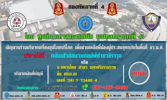 #กองทัพภาคที่4 #ศูนย์บรรเทาสาธารณภัย #มณฑลทหารบกที่41