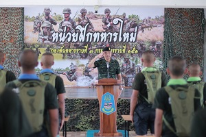 โดย แม่ทัพภาคที่ 4 กล่าวว่า “วันนี้จะเข้าสู่ห้วงการฝึกในสัปดาห์ที่ 2 แต่ครูฝึก ผู้ฝึกทุกคนยังคงจะต้องสังเกตความเป็นอยู่ และการตอบสนองของน้อง ๆ ที่มีต่อการฝึกว่าเป็นอย่างไรบ้าง การให้ข้อมูลความรู้ ทักษะวิชาต่าง ๆ แก่น้องทหารต้องมีการติดตามผล ทำทุกขั้นตอนในการฝึกให้เป็นระบบ ระเบียบที่ถูกต้อง ซึ่งผู้บังคับบัญชาทุกระดับชั้นมีความห่วงใยในเรื่องดังกล่าวเป็นอย่างมาก ที่สำคัญ การฝึกน้องทหารใหม่ ผู้ฝึก ครูฝึกต้องเข้าใจหัวอกของน้องเล็กที่ต้องจากบ้านเข้ามา การปรับตัวของแต่ละคน จะต้องได้รับความใส่ใจอย่างเท่าเทียม ในเรื่องของสภาพอากาศที่ร้อนจัด ให้ผู้ฝึกปรับเปลี่ยนการฝึกให้สอดคล้องกับปัจจุบัน ระมัดระวังการเจ็บป่วยจากโรคลมร้อน (Heat Stroke) เจ้าหน้าที่ในหน่วยฝึกต้องมีทักษะการปฐมพยาบาลเร่งด่วนขั้นต้น และการช่วยเหลือบุคคลขั้นต้น (CPR) ที่สำคัญคือ ต้องไม่มียาเสพติดในหน่วยฝึกอย่างเด็ดขาด“