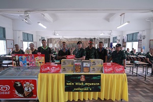 วันที่ 14 พฤษภาคม 2567 พลโท ศานติ ศกุนตนาค แม่ทัพภาคที่ 4 / ผู้อำนวยการรักษาความมั่นคงภายในภาค 4 ลงพื้นที่ตรวจเยี่ยมหน่วยฝึกทหารใหม่ กองพันทหารราบที่ 3 กรมทหารราบที่ 151 ค่ายกรมหลวงนราธิวาสราชนครินทร์ ตำบลมะรือโบออก อำเภอเจาะไอร้อง จังหวัดนราธิวาส เพื่อพบปะพูดคุยให้กำลังใจน้องทหารใหม่ ตลอดจนเน้นย้ำผู้ฝึกทหารใหม่ให้ยึดถือแนวทางตามระเบียบ และหลักสูตรปฏิบัติการฝึกทหารใหม่ของกองทัพบก ตลอดจนให้สอดคล้องกับนโยบายของผู้บังคับบัญชา และสภาพแวดล้อมในปัจจุบัน ซึ่งผู้ฝึกทหารใหม่ต้องมีความเข้าใจขั้นตอนการปฏิบัติในการฝึกอย่างถูกต้อง สร้างทัศนคติทีดี ฝึกให้น้องทหารใหม่มีความเข้มแข็งทั้งด้านร่างกายและจิตใจ ปราศจากการสูญเสีย เกิดความภาคภูมิใจแก่น้อง ๆ ทหาร และครอบครัว ดังคำขวัญของหน่วยฝึกที่ว่า “ฝึกปลอดภัย มีวินัยดี มีความรู้ ดูแลเหมือนครอบครัว” แม้วันนี้ไม่ได้ร่วมรับประทานอาหาร แต่มีอาหารพิเศษ ดับร้อนเป็นไอศกรีมแช่เย็นมาฝากน้อง ๆ ในหน่วยฝึกด้วย