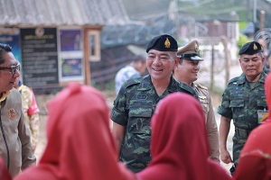 จากนั้น แม่ทัพภาคที่ 4 ได้เดินทางเพื่อตรวจเยี่ยมชุดคุ้มครองตำบลสากอ อำเภอสุไหงปาดี จังหวัดนราธิวาส พบปะ สอบถามปัญหา ข้อขัดข้อง ก่อนได้มอบแนวทางการปฏิบัติงาน เสริมส่วนที่ขาดให้เกิดประสิทธิภาพการทำงานที่สูงสุดต่อกำลังเจ้าหน้าที่ เน้นย้ำการรักษาความปลอดภัยฐานปฏิบัติการของตนเอง ตลอดจนเจ้าหน้าที่ที่ออกปฏิบัติภารกิจ จะต้องไม่ประมาท วางแผนชี้แจงคำสั่งงานให้เข้าใจกันอย่างเป็นระบบ ในส่วนการลาดตระเวนเส้นทางต้องพึงระลึกระมัดระวังอยู่เสมอ เส้นทางพื้นที่ไหนเสี่ยงหรือล่อแหลมต้องปรับกลยุทธอย่างรู้เท่าทัน หากเจ้าหน้าที่ปลอดภัย นั่นหมายความว่า ชาวบ้านในพื้นที่ก็ปลอดภัยเช่นกัน สิ่งสำคัญทุกฐานปฏิบัติการ หรือการออกภารกิจทุกครั้ง ต้องมีแผนเผชิญเหตุที่ทุกคนสามารถปฏิบัติได้โดยทันทีเมื่อเกิดเหตุการณ์ ในโอกาสนี้ ได้มอบสิ่งของอุปโภค- บริโภคให้กับกำลังพล เพื่อเป็นการสร้างขวัญและกำลังใจให้แก่กำลังพลในการปฏิบัติหน้าที่ต่อไป