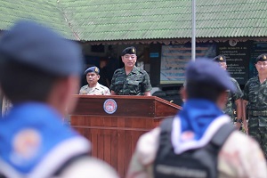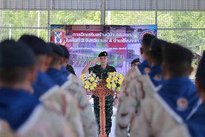 โดย แม่ทัพภาคที่ 4 ได้ให้โอวาทเจ้าหน้าที่ อส. ประจำ ชคต. ว่า “หลังจากที่กระทรวงมหาดไทยร่วมกับกองทัพบกเปิดการฝึก อส.จชต. เพื่อสร้างความเข้มแข็งในพื้นที่ จชต. เป็นปีที่ 2 แล้ว ซึ่งทุกคนทราบกันดีว่า ในการฝึกแต่ละครั้งมีวัตถุประสงค์เพื่ออะไร เราต้องการผลิต อส. ที่ได้รับการคัดเลือก เพื่อเป็นกำลังสำคัญในการดูแลพื้นที่ คุ้มครองดูแลพื้นที่ให้มีความปลอดภัยมากที่สุด เนื่องจากเจ้าหน้าทุกนายเป็นคนใกล้ชิด และคุ้นเคยกับคนในพื้นที่อย่างดี ตลอดจนสามารถเข้าใจบริบทในพื้นที่ และสามารถขับเคลื่อนพื้นที่ให้เกิดความสงบสุขได้ ซึ่งในอนาคตข้างหน้าเราต้องมีการผลิต อส. ให้เป็นกำลังหลักในการเสริมสร้างความมั่นคงในพื้นที่จังหวัดชายแดนภาคใต้อย่างเข้มแข็ง ทำให้พื้นที่ปลอดเหตุและประชาชนปลอดภัย สร้างความเชื่อมั่นให้กับประชาชน และขอให้มีความตั้งใจและมุ่งมั่นต่อการฝึก เก็บเกี่ยวความรู้ ประสบการณ์ที่ได้รับให้ได้มากที่สุด ฝึกแล้วต้องนำไปถ่ายทอดให้ถึงเจ้าหน้าที่ทุกนาย“