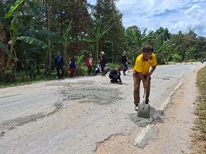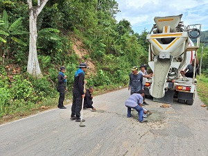 เมื่อวันที่ 16 พฤษภาคม 2567 เวลา 09.00 น. หน่วยเฉพาะกิจกรมทหารพรานที่ 41 จัดกำลังพล ชุดปฏิบัติการกิจการพลเรือน กองร้อยทหารพรานที่ 4110 หน่วยเฉพาะกิจกรมทหารพรานที่ 41 ร่วมกับ นายวิเศษ มากเกลี้ยง รองนายกองค์การบริหารส่วนตำบลตลิ่งชัน, ผู้นำท้องที่, ผู้นำชุมชน, หน่วยงานราชการ และประชาชนในพื้นที่ ดำเนินการปรับปรุงพัฒนาถนนทางหลวงแผ่นดินหมายเลข 4273 (ตะบิงติงงี – ศรีสาคร) เพื่อให้ประชาชนได้เดินทางสัญจรไป-มา อย่างสะดวกและลดอุบัติเหตุที่จะเกิดขึ้น ในพื้นที่ บ้านกือลอง หมู่ที่ 2 ตำบลตลิ่งชัน อำเภอบันนังสตา จังหวัดยะลา
