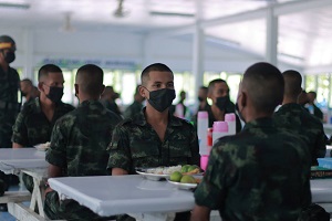 ทั้งนี้ ได้เน้นย้ำมอบนโยบายกับหน่วยฝึก ให้ทุกหน่วยมีความพร้อมในการดูแล และปฏิบัติงานอย่างครอบคลุม โดยเฉพาะในช่วงนี่เริ่มมีการแพร่ระบาดของเชื้อไวรัส โควิด-19 กลับมาอีก ประกอบกับอากาศที่ร้อนจัด ให้เจ้าหน้าที่ได้ควบคุม และปฏิบัติตามมาตรการต่างๆที่ได้กำหนดไว้อย่างเข้มงวด เตรียมความพร้อม และมีแผนเผชิญเหตุเมื่อมีการเจ็บป่วย ซึ่งช่วงนี้จะเข้าสัปดาห์ที่ 2 ของการฝึกทหารใหม่ จะเป็นการฝึกแบบแยกกลุ่ม เพื่อเป็นระยะห่างในการฝึก ลดความเสี่ยงของการติดเชื้อ โควิด-19 ให้ผู้ฝึกได้ดูแลเรื่องสถานที่การฝึก หลีกเลี่ยงแดดจัด ลดความเสี่ยงการเจ็บป่วยจากโรคลมร้อน (Heat Stroke) ด้วย นอกจากนี้ในวันอาทิตย์ที่จะถึง จะเป็นการเปิดหน่วยฝึก และให้ญาติเข้าเยี่ยมทหารใหม่ ในกิจกรรม Open House ให้ทุกหน่วยเตรียมความพร้อมในการดูแล และอำนวยความสะดวกให้กับญาติผู้ปกครองที่มาเยี่ยมบุตรหลานอย่างดีที่สุดด้วย