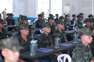 โดย แม่ทัพภาคที่ 4 ได้กล่าวพบปะ กับน้องทหารใหม่ ว่า “ทหารใหม่ 100 กว่านาย ก็จะมาจาก 100 กว่าพื้นที่ การเข้ามาเป็นทหารใหม่ทำให้น้องๆทุกคนได้เจอเพื่อนใหม่มากมาย บางคนมาจากจังหวัดบุรีรัมย์ เชียงใหม่ เชียงราย บางคนมาจากจังหวัดชุมพร จากเหนือสุด ถึงใต้สุดก็มี เราเข้ามา มากหน้าหลายตา ต่างครอบครัว ต่างศาสนา แต่เรามาใช้ชีวิตร่วมกัน เป็นเพื่อนกัน และจะทำให้เราจดจำกันตลอดไป ว่าเราคือรุ่นทหารใหม่ ผลัดที่ 1 ปี 2567 เป็นทหารน้องจะได้อะไรอีกมากมาย ได้ฝึกการเป็นผู้นำที่ดี เป็นผู้ตามที่มีประสิทธิภาพ ฝึกความอดทน ฝึกความสามัคคี หากใครอยากต่อยอดรับราชการทหาร เราก็มีโคต้า สนับสนุนให้อย่างเต็มที่ บางคนอยากกลับไปทำอาชีพอื่น เราก็ยังมีการฝึกอาชีพต่าง ๆ ให้อยู่ที่ตัวเราจะเลือกเดิน เส้นทางชีวิตลูกผู้ชายเราสามารถเลือกเองได้อย่างเต็มที่ สิ่งสำคัญที่แม่ทัพฯ อย่างย้ำเตือนน้องๆ คือเรื่อง ยาเสพติด หน่วยฝึกทหารใหม่ทุกหน่วยจะต้องปราศจากยาเสพติด หากคนไหนเคยหลงทางไปยุ่งกับสิ่งเหล่านั่น ที่นี่จะทำให้น้องเปลี่ยนตัวเอง และกลับไปใช้ชีวิตได้ตามปกติ เป็นความภาคภูมิใจของครอบครัว เป็นคนดีของสังคม และประเทศชาติต่อไป”