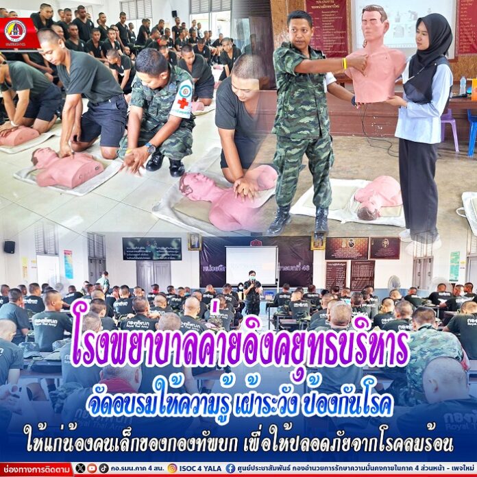 วันที่ 17 พฤษภาคม 2567 แผนกส่งเสริมสุขภาพและเวชกรรมป้องกัน โรงพยาบาลค่ายอิงคยุทธบริหาร ลงพื้นที่ให้ความรู้การป้องกันการเจ็บป่วยจากความร้อน, โรคติดต่อในหน่วยฝึกทหารใหม่ และการช่วยฟื้นคืนชีพขั้นพื้นฐาน (CPR) ให้แก่น้องทหารใหม่ โดยได้รับการสนับสนุน เครื่องดื่มเกลือแร่ สปอนเซอร์ จาก พันเอก โกสินทร์ ชัยชำนาญ ผู้อำนวยการโรงพยาบาลค่ายอิงคยุทธบริหาร มอบให้ หน่วยฝึกทหารใหม่ มณฑลทหารบกที่ 46 จำนวน 118 นาย และ กองพันทหารราบที่ 3 กรมทหารราบที่ 153 จำนวน 113 นาย