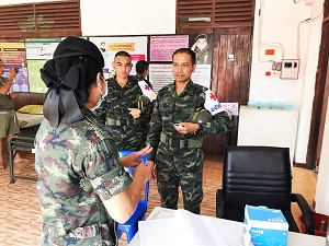 นอกจากนี้เจ้าหน้าที่ยังได้นิเทศหน่วยฝึกทหารใหม่ (ระหว่างการฝึก) ผลัด 1 ปี 2567 ตรวจการจัดการหน่วยฝึก การสุขาภิบาลหน่วยฝึก โรงเลี้ยงและโรงนอน พร้อมประเมินความรู้นายสิบพยาบาลการเฝ้าระวังการบาดเจ็บจากความร้อนและและการปฐมพยาบาลเบื้องต้น ณ หน่วยฝึกทหารใหม่ มณฑลทหารบกที่ 46 และกองพันทหารราบที่ 3 กรมทหารราบที่ 153 ค่ายอิงคยุทธบริหาร อำเภอหนองจิก จังหวัดปัตตานี