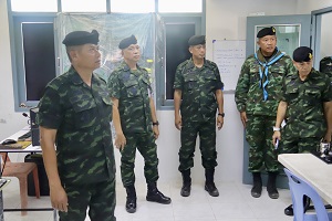 จากนั้น รองแม่ทัพภาคที่ 4 / รองผู้อำนวยการรักษาความมั่นคงภายในภาค 4 ส่วนหน้า ได้เดินทางไปยัง กองร้อยป้องกันชายแดนที่ 4 บ้านศรีพงัน ตำบลเกาะสะท้อน อำเภอตากใบ จังหวัดนราธิวาส พร้อมทั้ง มอบแนวทางการปฏิบัติงานโดยจัดกำลังเสริมผลัดเปลี่ยนหมุนเวียนเฝ้าระวัง ตลอดแนวตะเข็บชายแดน เพื่อป้องกันการลักลอบข้ามแดน อีกทั้งได้สอบถามปัญหาข้อขัดข้องต่าง ๆ ของหน่วยในการปฏิบัติงานเพื่อให้การดำเนินภารกิจที่ได้รับมอบหมายเกิดประสิทธิภาพมากที่สุด อีกทั้งร่วมแลกเปลี่ยนความคิดเห็น เพื่อให้การปฏิบัติงานสอดคล้องเป็นไปในทิศทางเดียวกัน